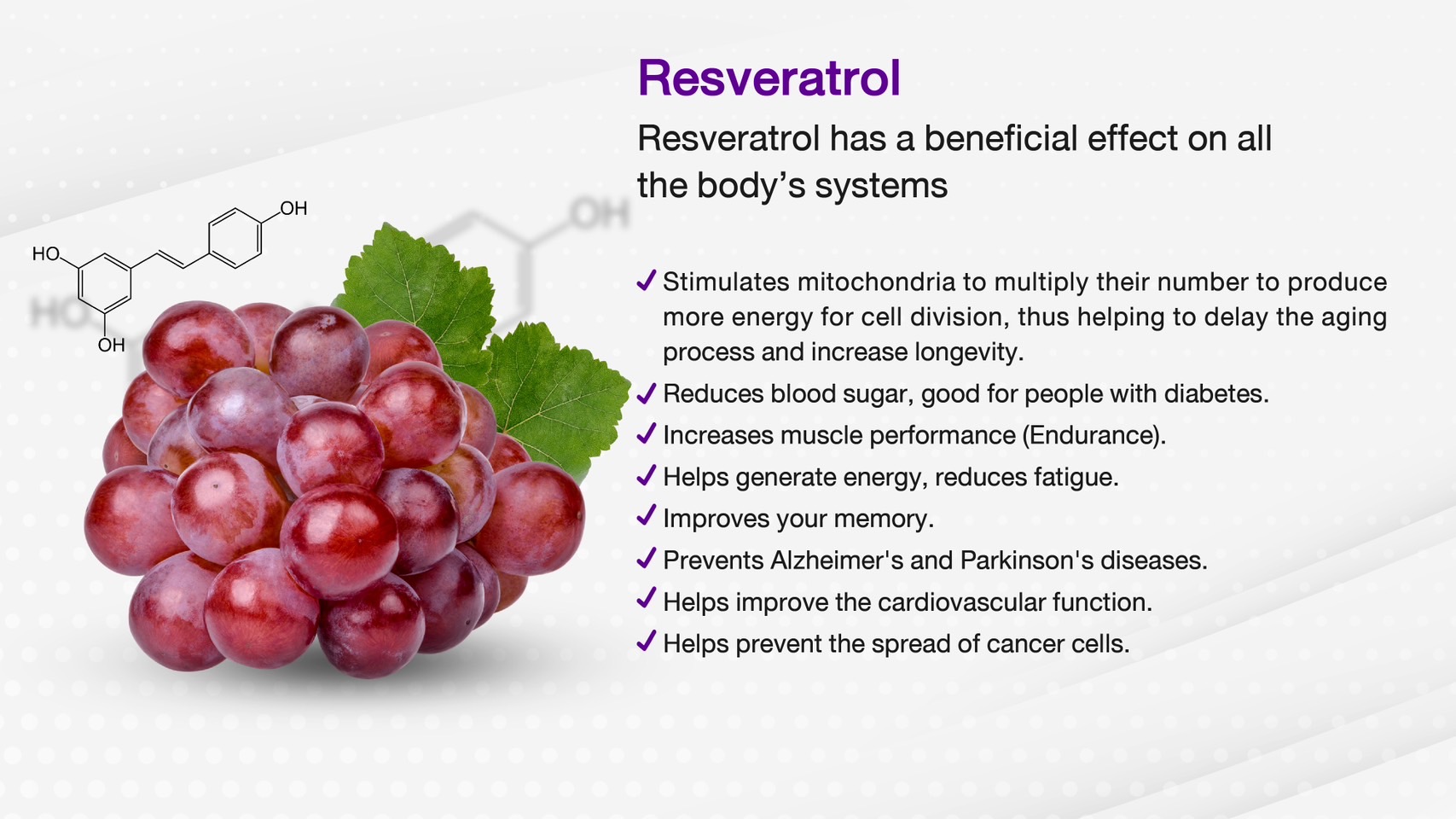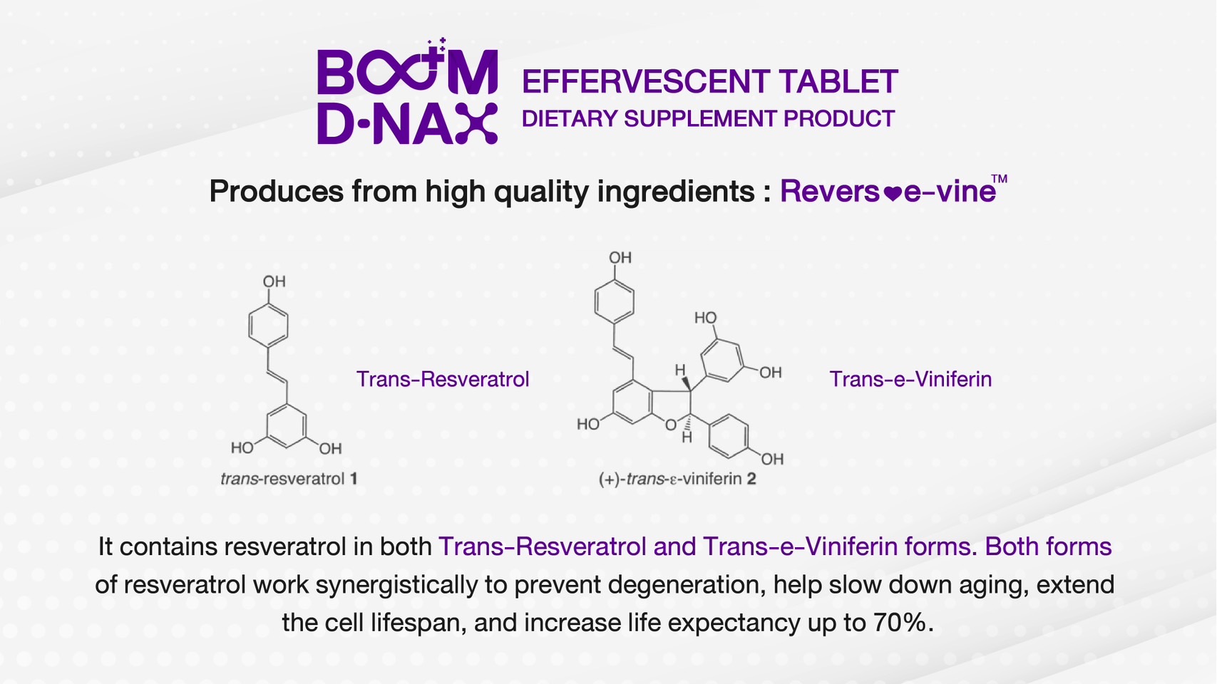 • Grapevine Extract (Reverse-vine) extracts from red wine and grapes.